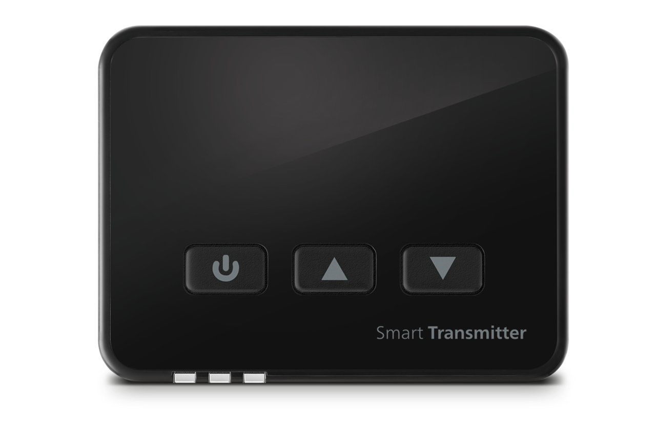 스마트 트랜스미터는 블루투스 기능이 없는TV를 스마트 커넥트에 무선으로 연결할 수 있는 송신기입니다.