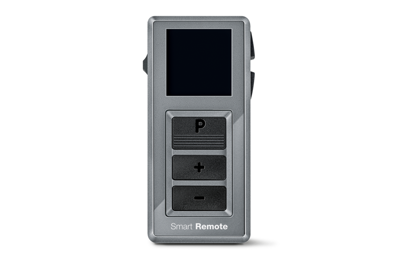 스마트폰을 사용하지 않거나 다른 사람의 눈에 띄지 않으면서 보청기를 편리하게 조절하기 원하는 착용자들을 위한 리모컨입니다.
