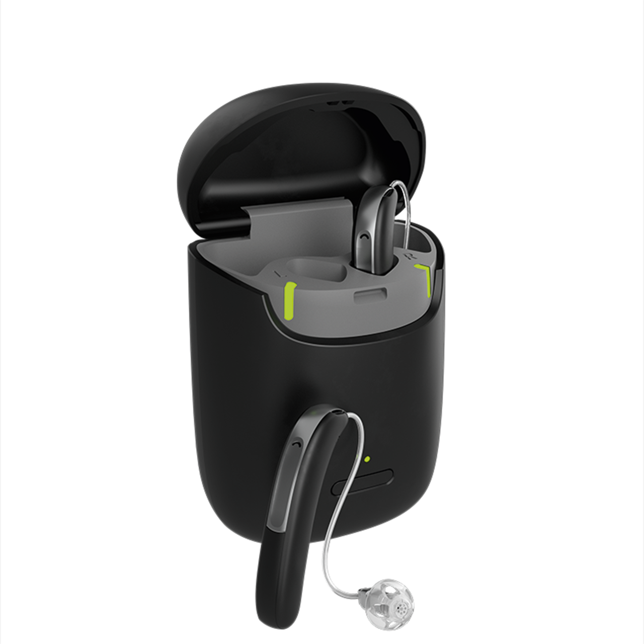 이동 중에도 보청기를 손쉽게 충전할 수 있는 휴대용 충전기입니다.